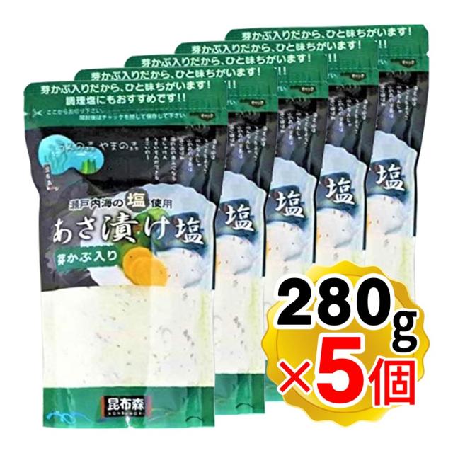 昆布森 あさ漬け塩 芽かぶ入り 280g×5個セット 瀬戸内海の塩使用 浅漬け塩 調味塩 浅漬け 焼き魚 イカ焼き パスタ