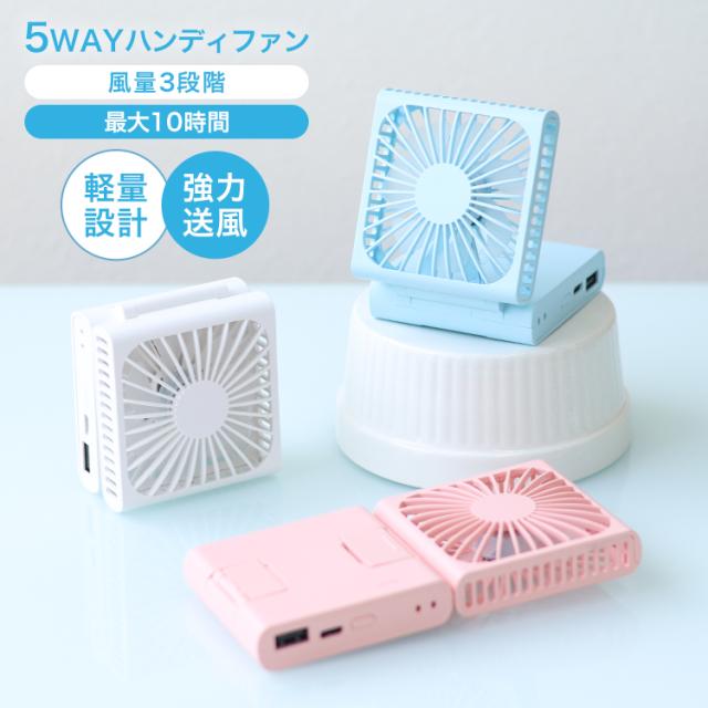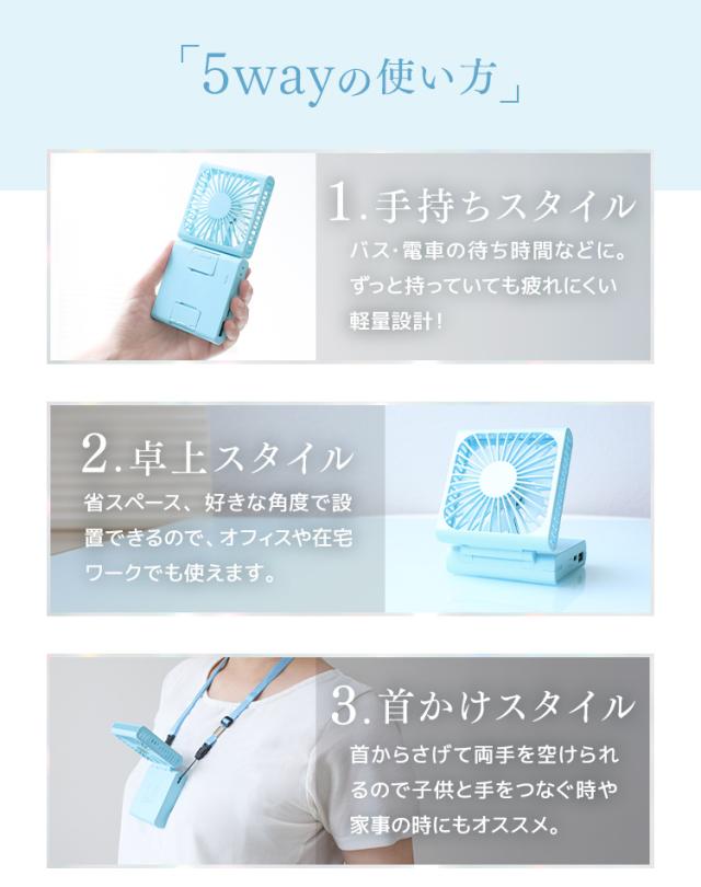 扇風機 小型 首掛け ハンディファン 1台5役 モバイルバッテリー 携帯扇風機 首掛け扇風機 首かけ 卓上 充電 バッテリー 手持ち 小型扇風機 ファン ネッククーラー 3段階 風量調節 軽量 折りたたみ扇風機 ハンディ ミニ扇風機 手持ち扇風機 USB 送料無料