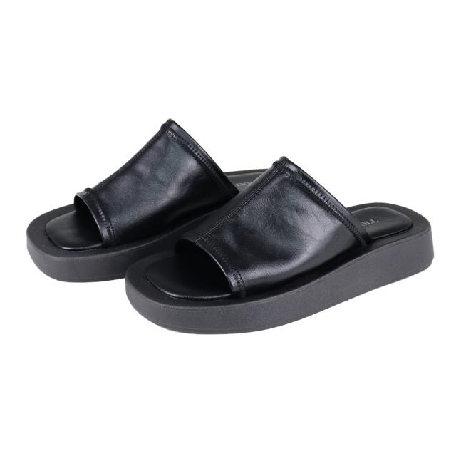 サンダル レディース スクエアトゥ サボ 歩きやすい シンプル 3.2cmヒール 22.5cm〜24.5cm 黒 ブラック No.4151 リバティードール