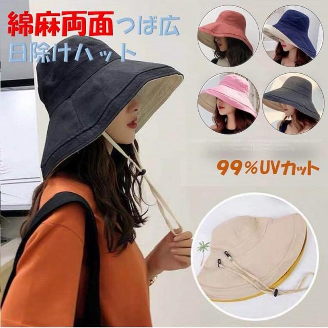 日よけ帽子 レディース おしゃれ 綿麻 つば広 両面使える ハット 母の日 夏 春 アウトドア 旅行 UVカット 紫外線対策 折りたたみ 紐付き 洗える おしゃれ 無地 あご紐つき 自転車 飛ばない 小顔効果 送料無料
