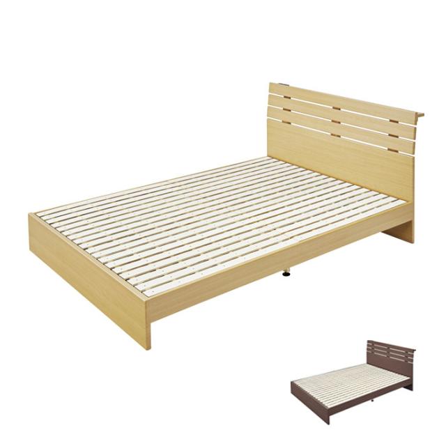 | 木目の美しいシンプルな木製フレームのダブルベッド。 床板がすのこになっており、通気性がよくカビが発生しにくくなっております。 フラットタイプのベッドボードには1500Wのコンセントが2口ついており、携帯電話の充電に便利。 カラーはモダン印象のブラウンとおしゃれな北欧風のナチュラルの2色展開。 |