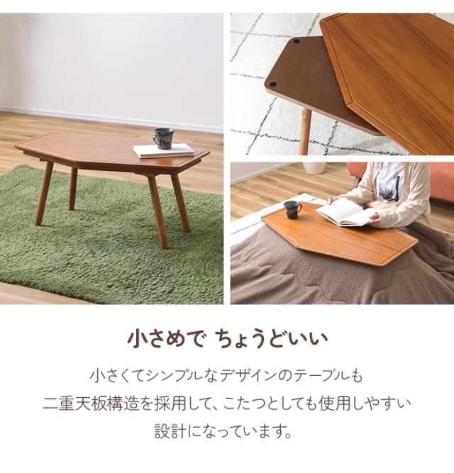 こたつ テーブル 六角形 幅80 こたつテーブル 80×50 こたつ 北欧 スクエア コタツテーブル 家具調こたつ 炬燵 薄型ヒーター 座卓 おしゃれ 北欧デザイン センターテーブル リビング ローテーブル 天然木 テレワーク リモートワーク 一人暮らし 新生活