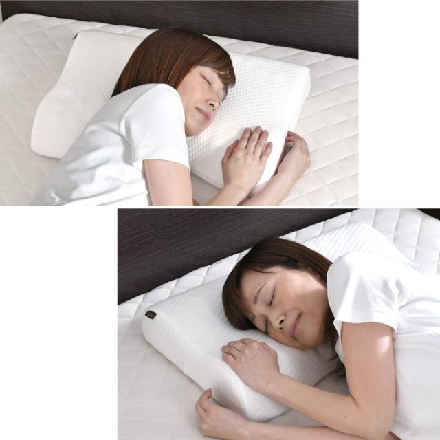 仰向け寝、横向き寝 どちらでもしっかり首をサポートする様に、「形」や「素材」にもこだわりました。
