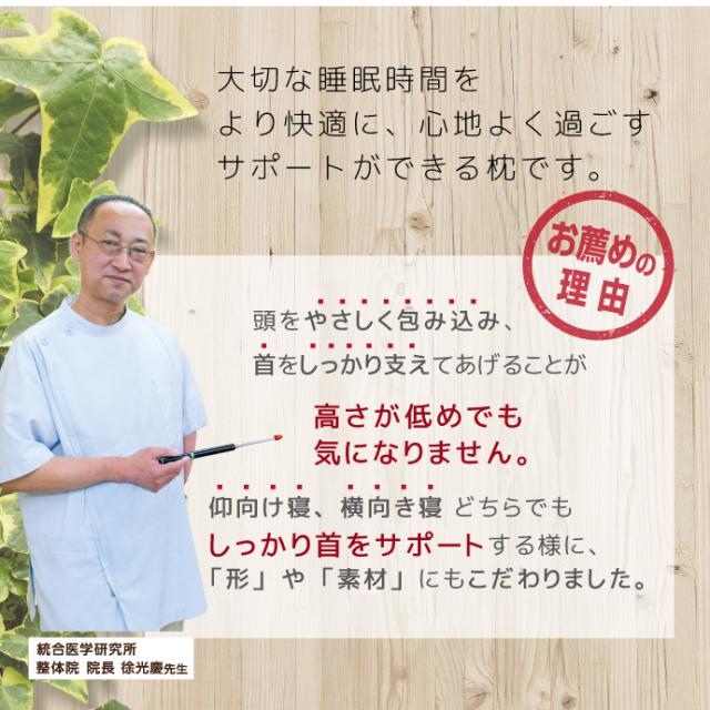 - 商品到着後当日から既にどの高い枕より寝付きが良かったので、毎日これで寝てます。ちょっと高いんだなぁとか耳が痛いとかもなく、低いはずなのに首も頭も仰向けも楽になりました。高さって大切かも!