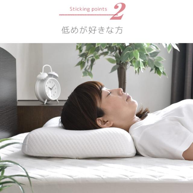- 以前は、ニトリの複数箇所高さを変えられる枕を使用してましたが、どう調整しても合いませんでした。低めとあった、こちらの枕を試してみた所、喉首あたりにあった詰まる感じがなく、大変寝やすくなりました。