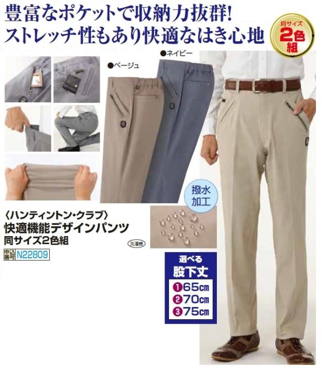 ハンティントン・クラブ 快適機能デザインパンツ(同サイズ2色組) 選べる股下丈 長ズボン メンズ 紳士服 シニア 男性 ベージュ ネイビー 薄茶色 紺色 シニアファッション 50代 60代 70代 80代 父の日 お父さん ストレッチパンツ ずぼん はっ水加工