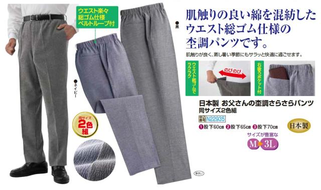 日本製 お父さんの杢調さらさらパンツ(同サイズ2色組) 選べる股下丈 長ズボン メンズ 紳士服 シニア 男性 黒 ネイビー ブラック 紺色 ウエストゴム シニアファッション 50代 60代 70代 80代 父の日 お父さん シンプル