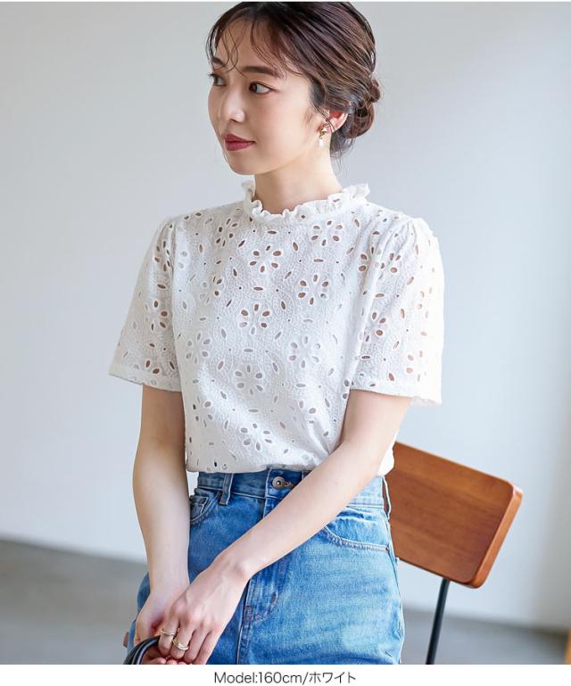 春新作 レースブラウス C6236 入荷済 レディース トップス 半袖 綿 コットン コットンレース オケージョン フェミニン