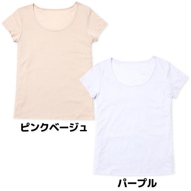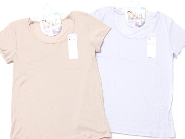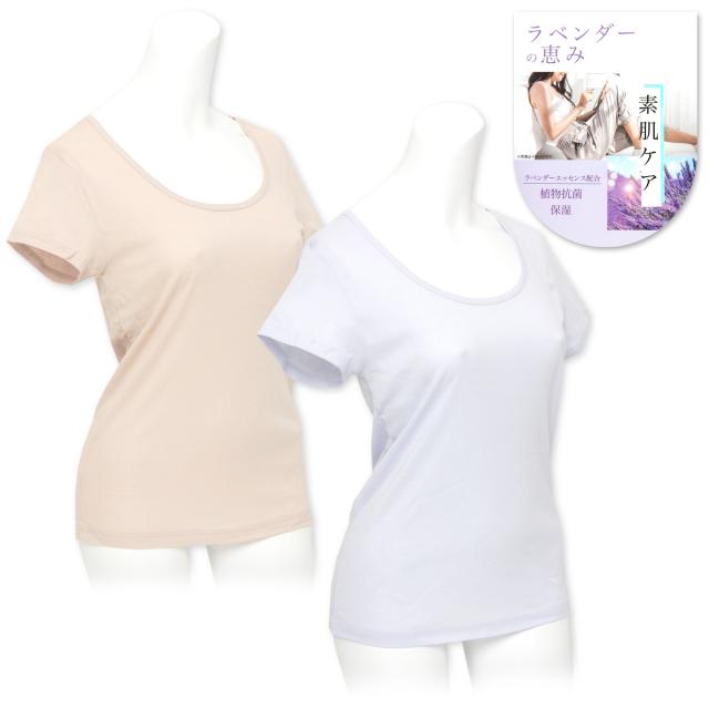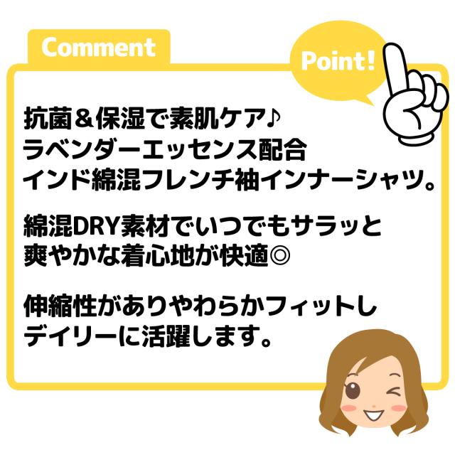【送料無料】婦人 レディース 綿混DRY フレンチ袖 インナー シャツ ラベンダーエッセンス 抗菌 保湿 下着 yg-1357【メール便対応】