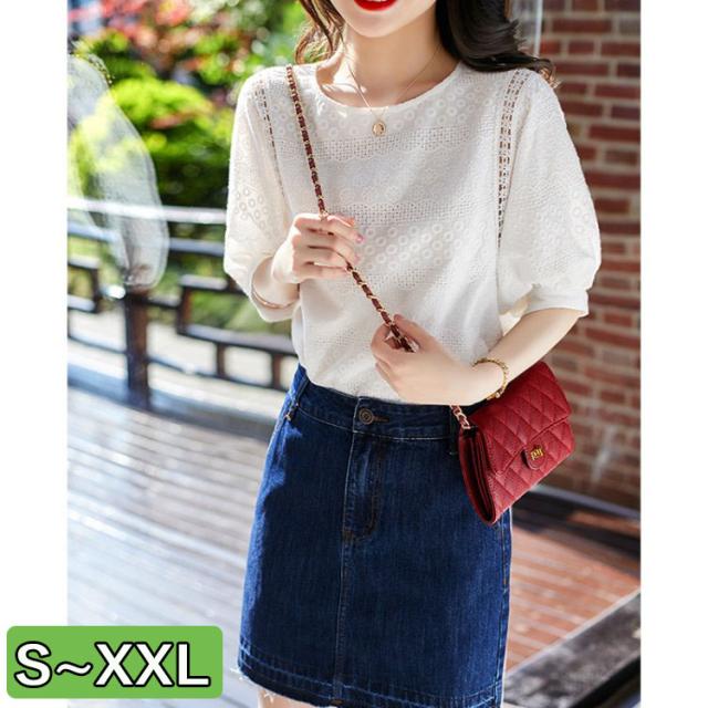 連携キーワード:ブラウス レディース きれいめ 40代 春夏 上品 白レースブラウス シフォントップス 五分袖 韓国風 ベアトップス 大きいサイズ 大人 オシャレ
