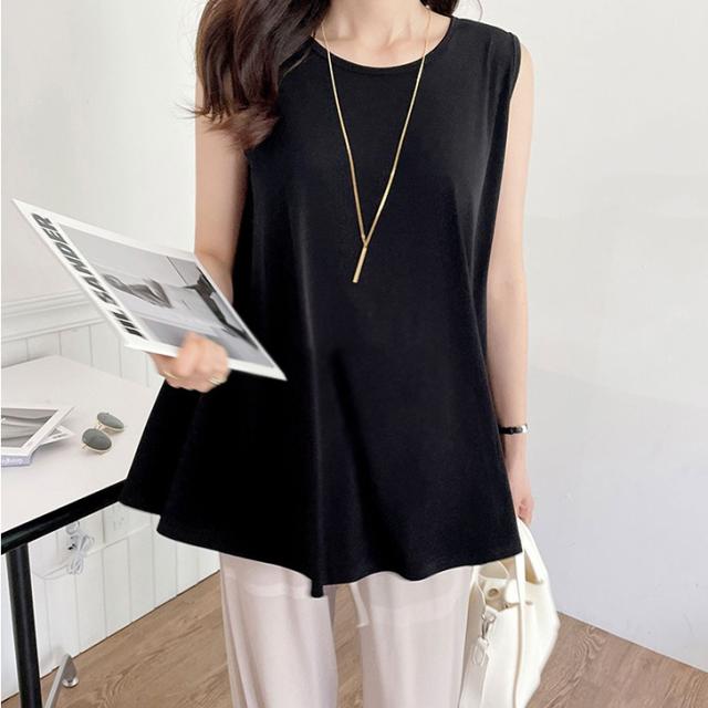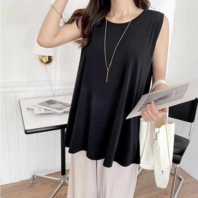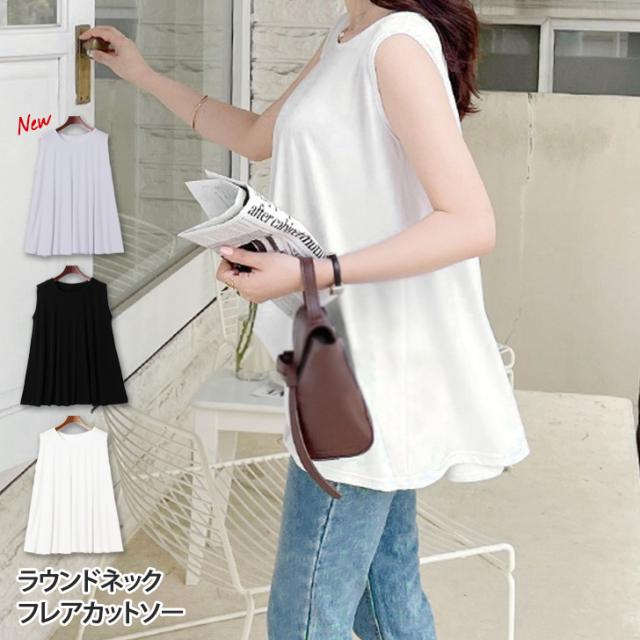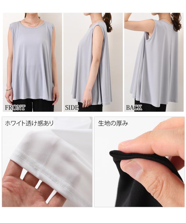 新作 ラウンドネックサラてろノースリーブフレアカットソー レディース トップス ロング丈 チュニック ゆったり きれいめ カジュアル おしゃれ タンクトップ 大きめ シンプル 無地 かわいい 大人 ストレッチ 伸縮性