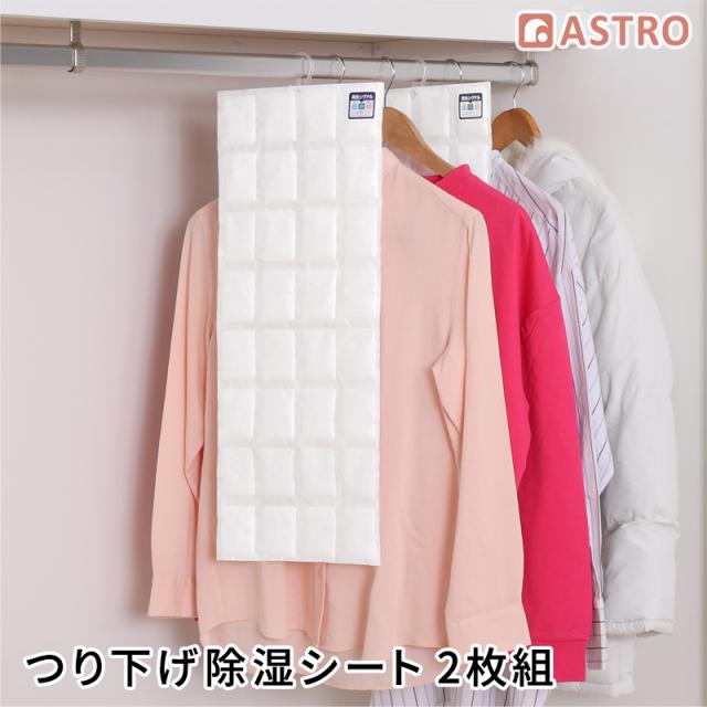 除湿シート ホワイト 2枚組 吊り下げ 除湿剤 除湿パック 消臭 吸湿 湿気取り 乾燥剤 防ダニ加工シリカゲル 防カビ カット可能 繰り返し使える アストロ 320-05