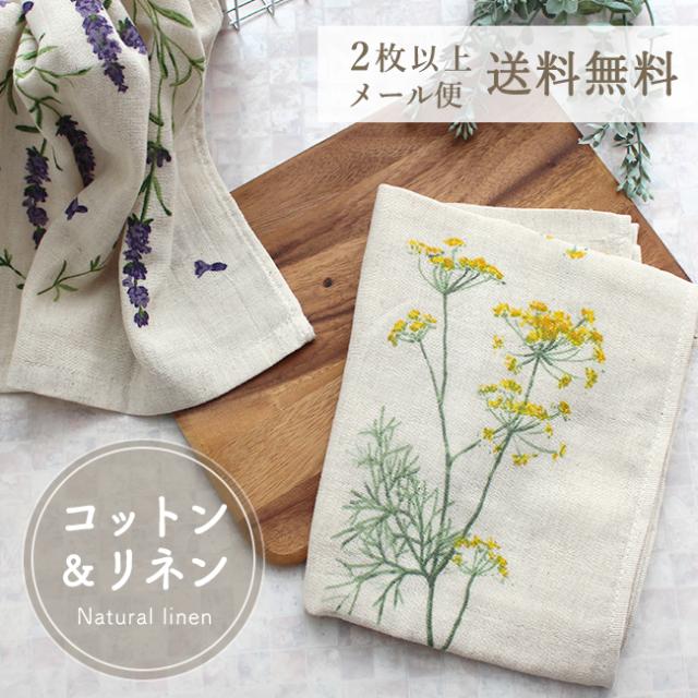 リネン フェイスタオル【2枚以上で送料無料】 二重ガーゼ ダブルガーゼ 速乾 麻 15% 綿麻混紡 速乾 日本製 プリント キッチンクロス タオル ガーゼ さわやか ラベンダー フェンネル 花柄 ハーブ ボタニカル やわらか 薄手 可愛い 夏 ポイント消化