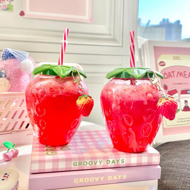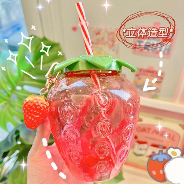 ウォーターボトル かわいい いちご イチゴ ストロベリー ins ストロー付き 1個【水筒 ドリンク ボトル ストローボトル ウォーターカップ ストローカップ ジュース コーヒー 可愛い カワイイ 女子 女性 学生 SNS インスタ映え】