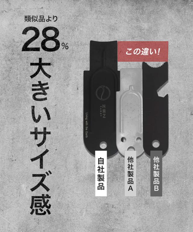 ・フェロセリウムロッドをしっかりと削り、且つ摩擦を起こすことで大きな火花を散らせるように素材の硬さ、エッジのシャープさや角度を幾度も検証し、大きな火花を起こす事ができるパワフルなストライカーです。