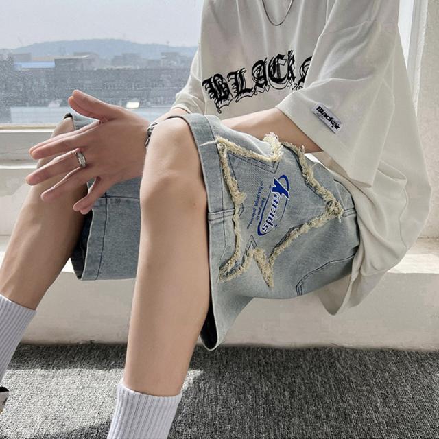 ストリートスタイルな星柄のシンプルなデニムハーフパンツ。