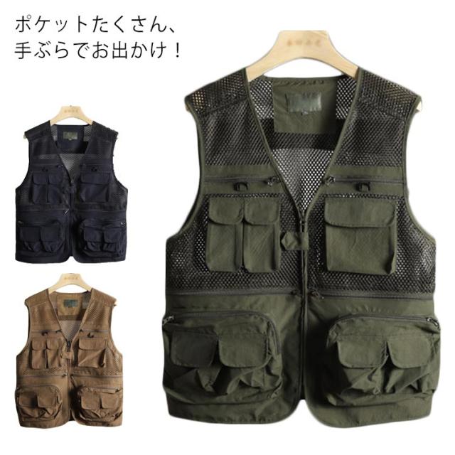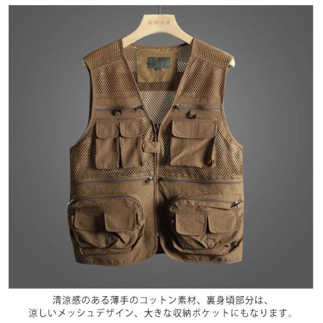 通気性優れる!メッシュ ベスト メンズ ジレベスト 多機能 サマーベスト ジレ 綿 ジレ コットンベスト アウトドア お釣り 大きいサイズ カジュアル L-4XL 送料無料