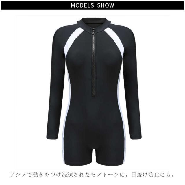 クールなワンピース水着! フィットネス水着 水着 フィットネス ワンピース オールインワン ウェットスーツ 体型カバー レディース ラッシュガード 長袖 半袖 競泳水着 練習用 大きいサイズ レギンスパンツ UVカット