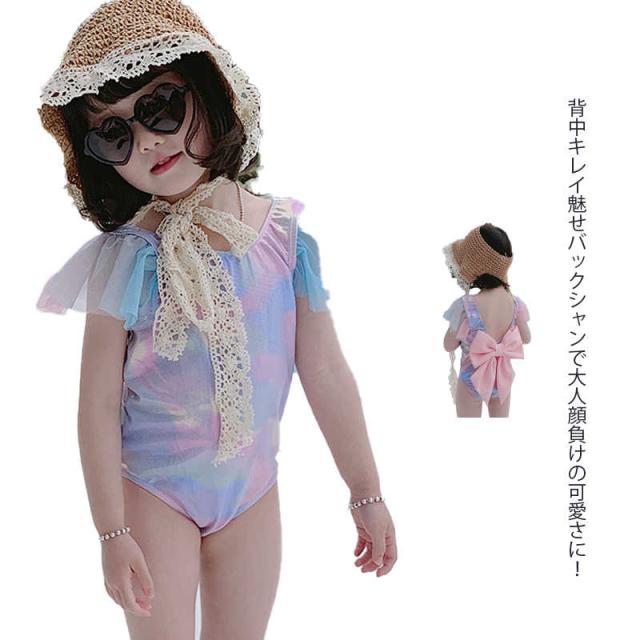 | 背中キレイ魅せバックシャンで大人顔負けの可愛さに! エンジェルスリーブが可愛い キッズ水着 ビーチやプールでも一気にオシャレに♪ リボン&フリルの後ろ姿もキュート | |