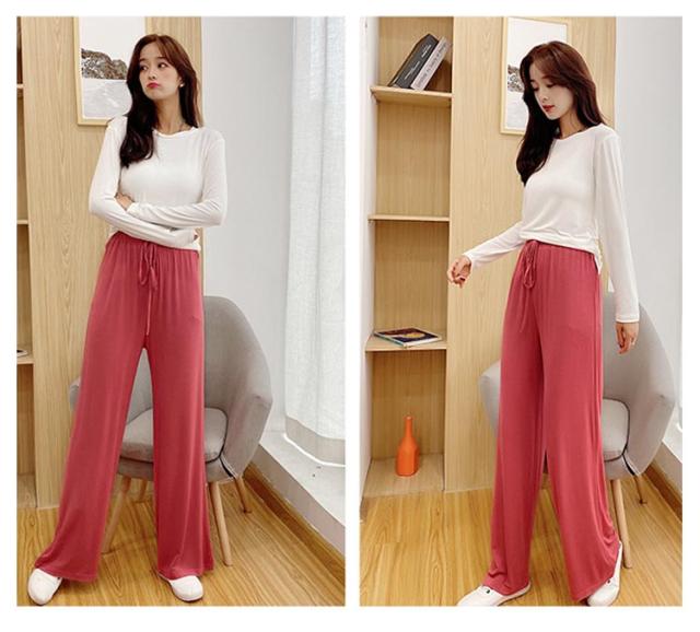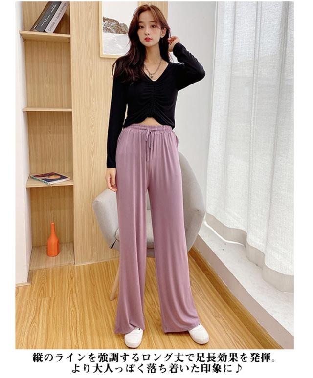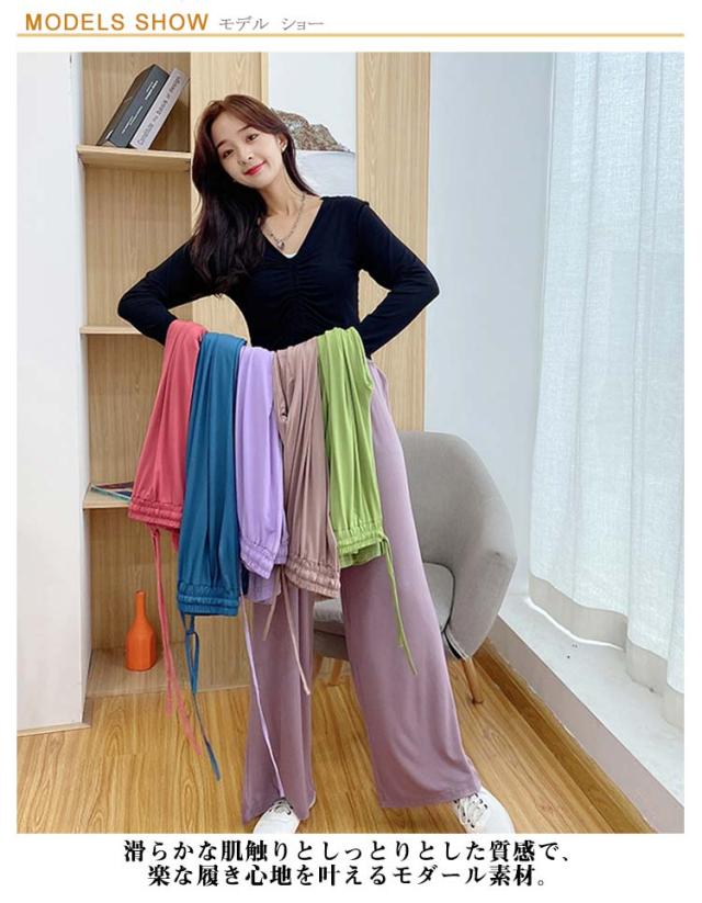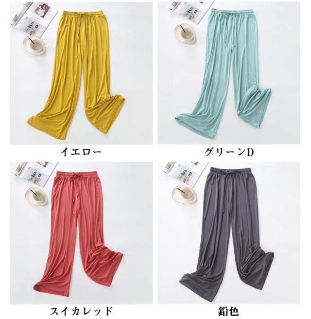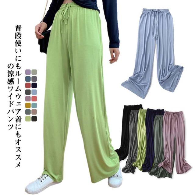 【送料無料】パンツ レディース ワイドパンツ ボトムス 春 夏 ゆったり 涼しい きれいめ 冷感 ルームウェア 無地 ロング丈 フレアパンツ 軽量 旅行 快適 ウェストゴム 体型カバー パジャマ 涼しい ズボン ジャージ ゆったり 伸縮 M L XL