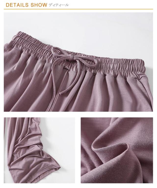 | 普段使いにもルームウェア着にもオススメの涼感ワイドパンツ 滑らかな肌触りとしっとりとした質感で、楽な履き心地を叶えるモダール素材。 縦のラインを強調するロング丈で足長効果を発揮。より大人っぽく落ち着いた印象に♪ ウエストはゴム仕様に仕上げ、お腹周りの窮屈感を軽減したデザイン。ウェスト紐もサイズを自由に調節できます。 ワンピースやチュニックなどのインナーに最適!おうち時間もぴったりで優雅にリラックスできる。 | |