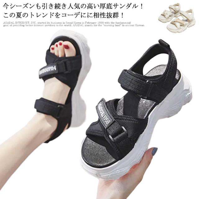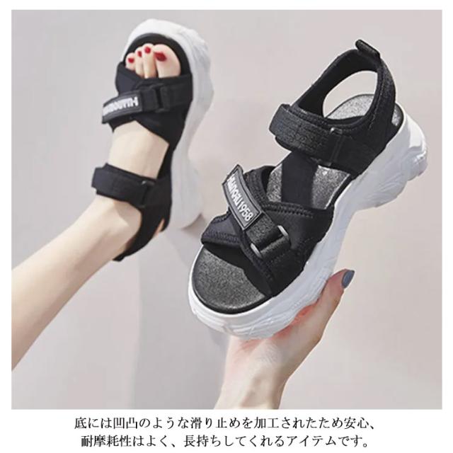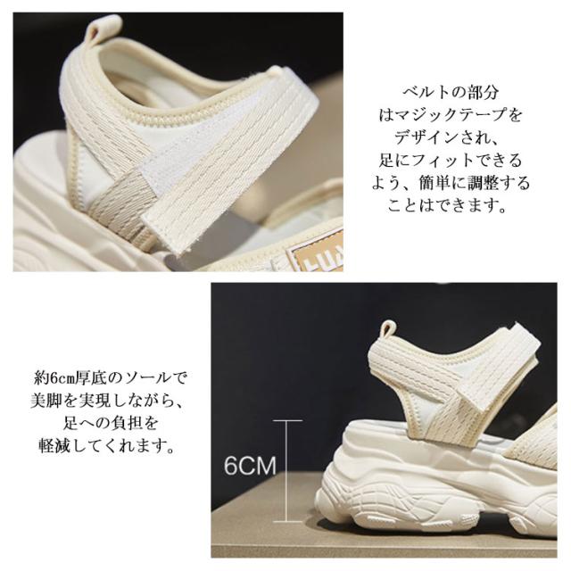 厚底スポーツサンダル レディース スポサン 6cm コンフォート 厚底サンダル スポーツサンダル シューズ 夏ビーサン ベルクロ 滑りにくい 歩きやすい 美脚 通気性がよい おしゃれ ハイキング 春夏 カジュアル シューズ 22.5-25.0cm