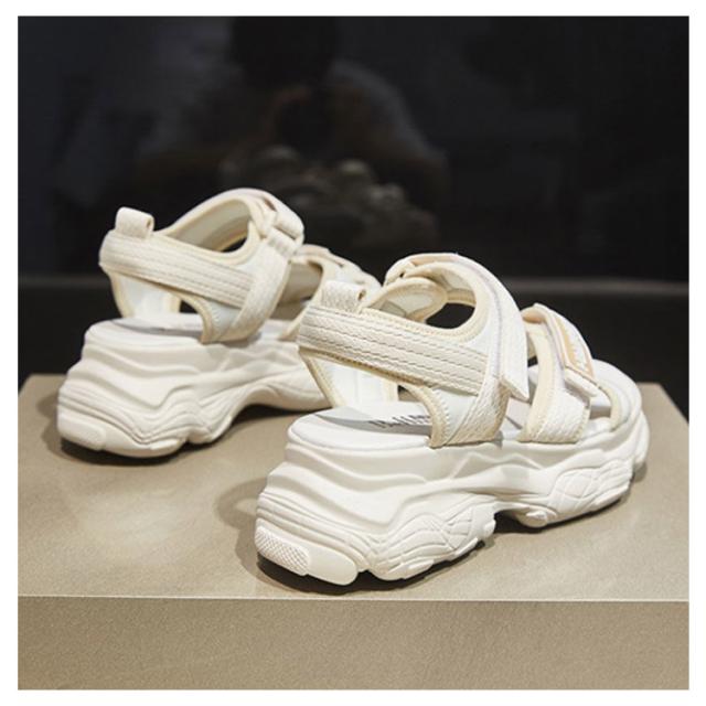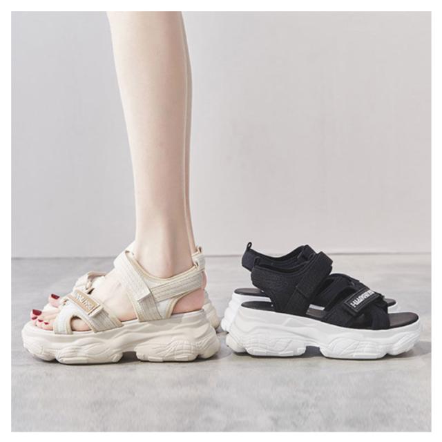 | 今シーズンも引き続き人気の高い厚底サンダル!この夏のトレンドをコーデにに相性抜群! ベルクロがデザインされ、美脚と歩きやすさの両方を叶える! 柔らかいインソールで長時間歩いても足が疲れ にくく、履き心地がとてもいいです。 約6cm厚底のソールで美脚を実現しながら、足への負担を軽減してくれます。 ベルトの部分はマジックテープをデザインされ、足にフィットできるよう、簡単に調整することはできます。 底には凹凸のような滑り止めを加工されたため安心、耐摩耗性はよく、長持ちしてくれるアイテムです。 | |