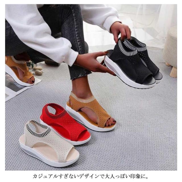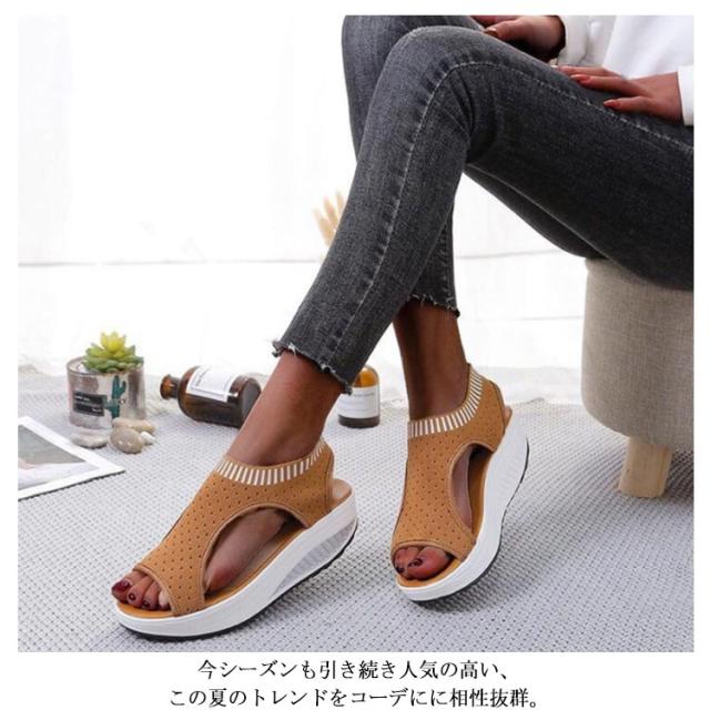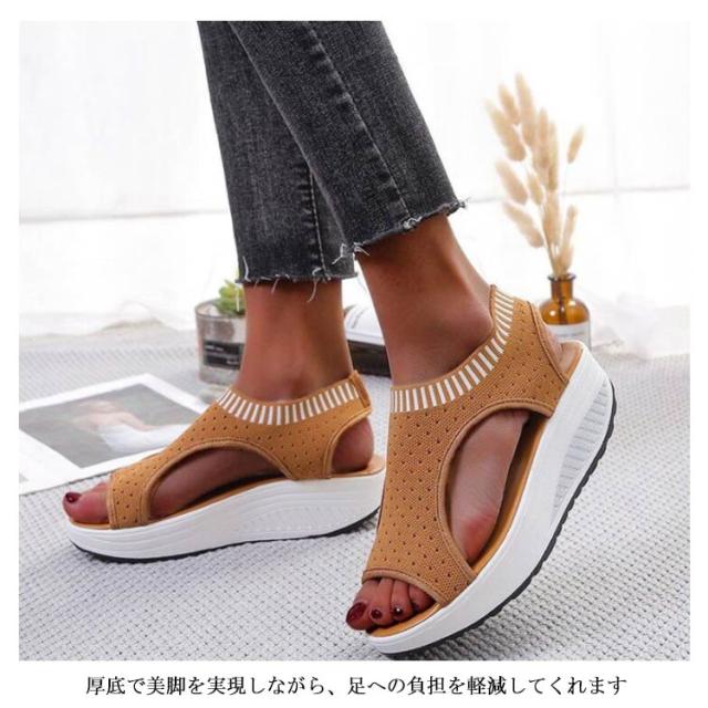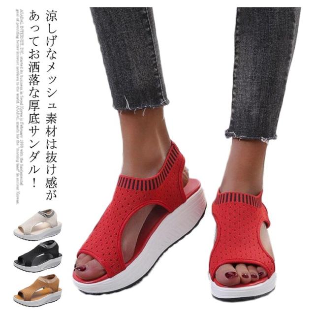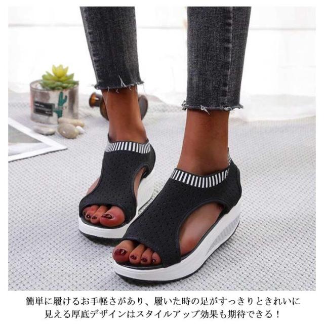 | 涼しげなメッシュ素材は抜け感があってお洒落な厚底サンダル! 今シーズンも引き続き人気の高い、この夏のトレンドをコーデにに相性抜群。 カジュアルすぎないデザインで大人っぽい印象に。 厚底で美脚を実現しながら、足への負担を軽減してくれます 簡単に履けるお手軽さがあり、履いた時の足がすっきりときれいに見える厚底デザインはスタイルアップ効果も期待できる! | |