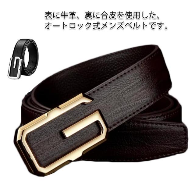 穴なしベルト メンズ レザーベルト オートロックベルト 牛革 合成皮革 ロングサイズ 無段階 ビジネス カジュアル バックルベルト フォーマル ワンタッチ 制服