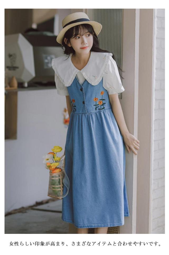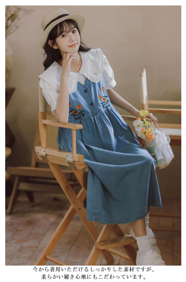 サロペットワンピース レディース ジャンバースカート ノースリーブ コットン ロング丈 Aライン 刺? 大人 可愛い オーバーオール 春 夏 大きいサイズ ゆったり 体型カバー ウォッシュ 洗い可