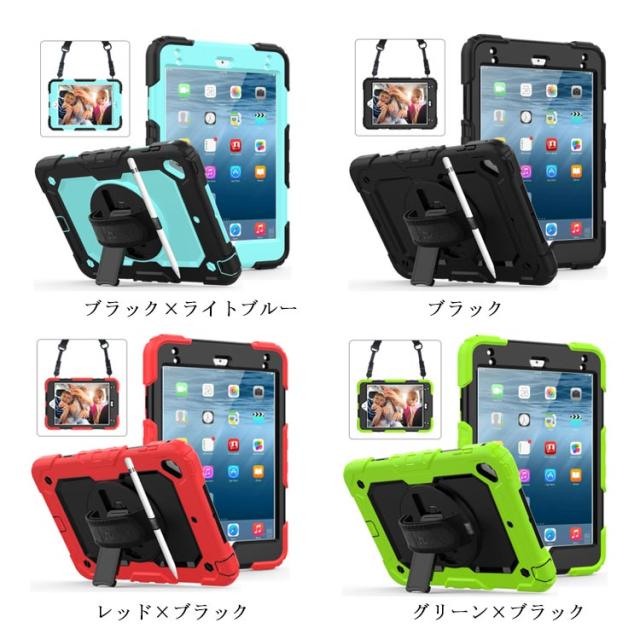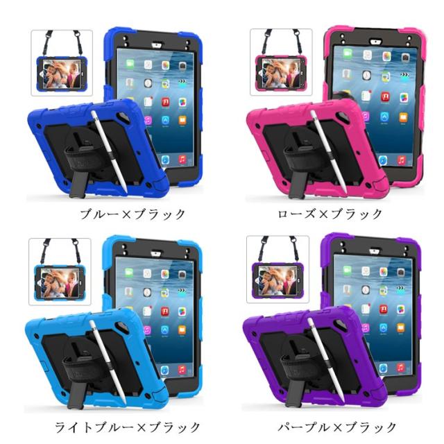 耐衝撃ケース ipadケース 10.2インチ ipadカバー 全面保護 カバー シリコン ペン収納 アームバンド ショルダー 回転 キックスタンド 第9世代 2018年 mini5 mini4