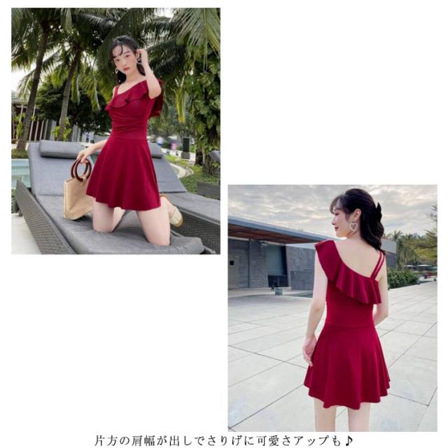 | 上品な可愛いらしさとセクシーな雰囲気を合わせた大人可愛い水着です★ 片方の肩幅が出しでさりげに可愛さアップも♪ ワンピだから気になるお腹周りは ピタッと隠せるのがうれしい! 安心ショートパンツ、めくれても露出は抑える、安心♪ 後ろ姿も腰も女性の魅力的スタイルラインを引き出せる♪♪ シンプルで大人なデザインで年齢を選ばず幅広く着こなせます。 | |
