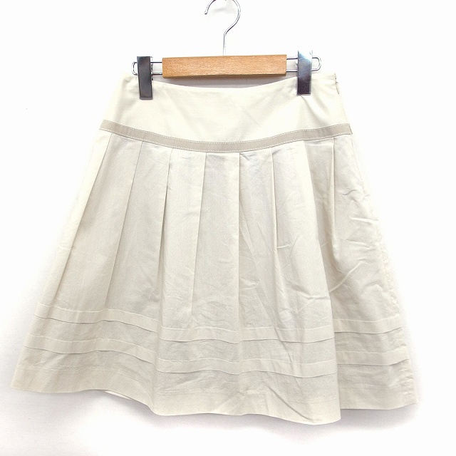 【中古】シンシアローリー CYNTHIA ROWLEY タック フレア スカート ひざ丈 ドット柄 リボン ティアード 綿 2 ベージュ
