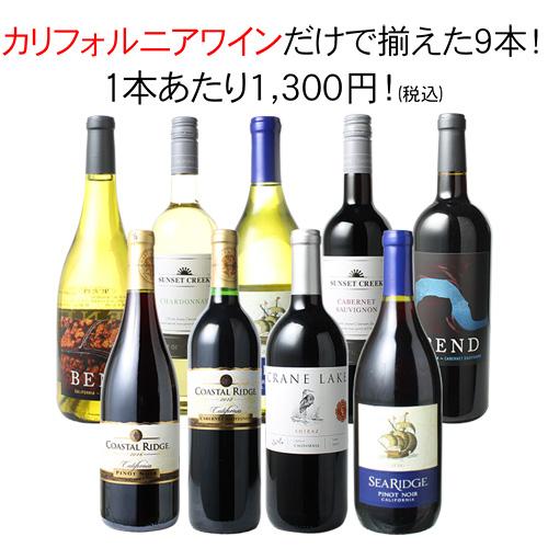 【送料無料】ワインセット 第14弾 家飲み カリフォルニア 9本 セット カベルネ・ソーヴィニョン シャルドネ ピノ・ノワール プティシラー アメリカ ソムリエおすすめ プレゼント ギフト 御祝 誕生日