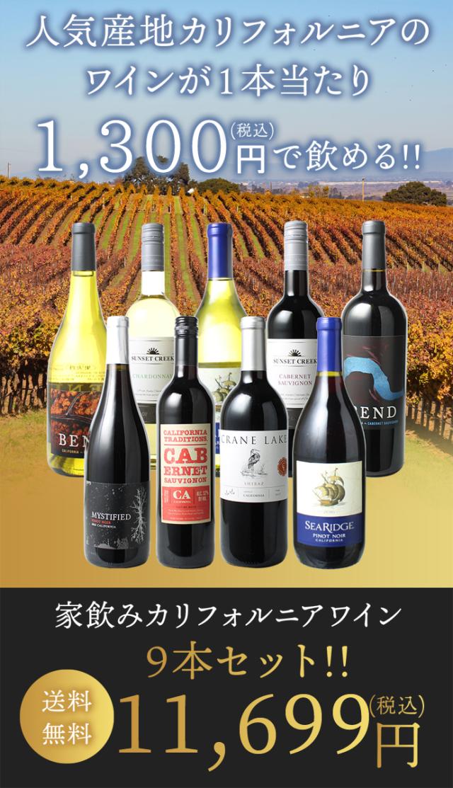 【送料無料】ワインセット 第13弾 家飲み カリフォルニア 9本 セット カベルネ・ソーヴィニョン シャルドネ ピノ・ノワール プティシラー アメリカ ソムリエおすすめ プレゼント ギフト 御祝 誕生日