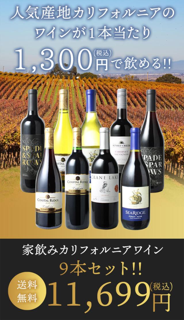 【送料無料】ワインセット 第16弾 家飲み カリフォルニア 9本 セット カベルネ・ソーヴィニョン シャルドネ ピノ・ノワール プティシラー アメリカ ソムリエおすすめ プレゼント ギフト 御祝 誕生日
