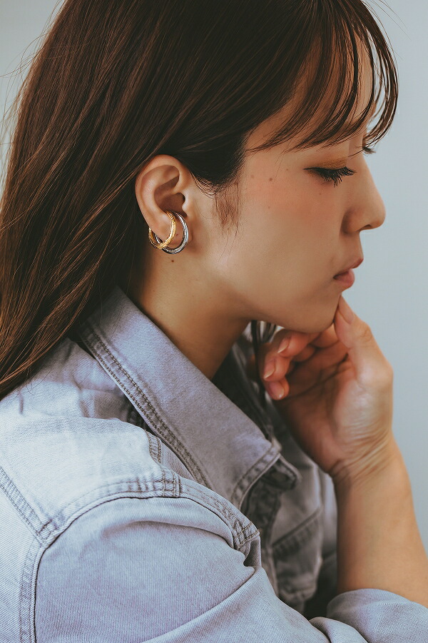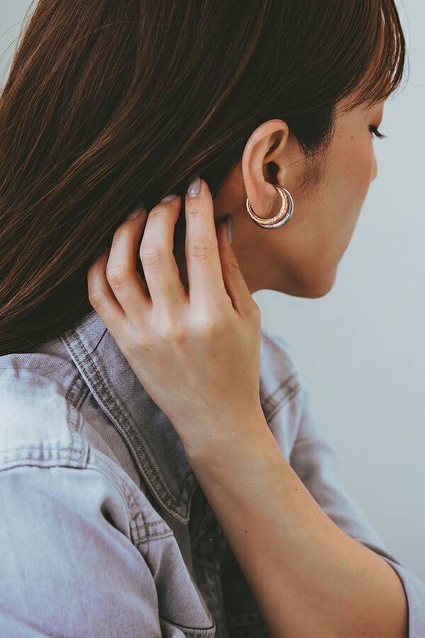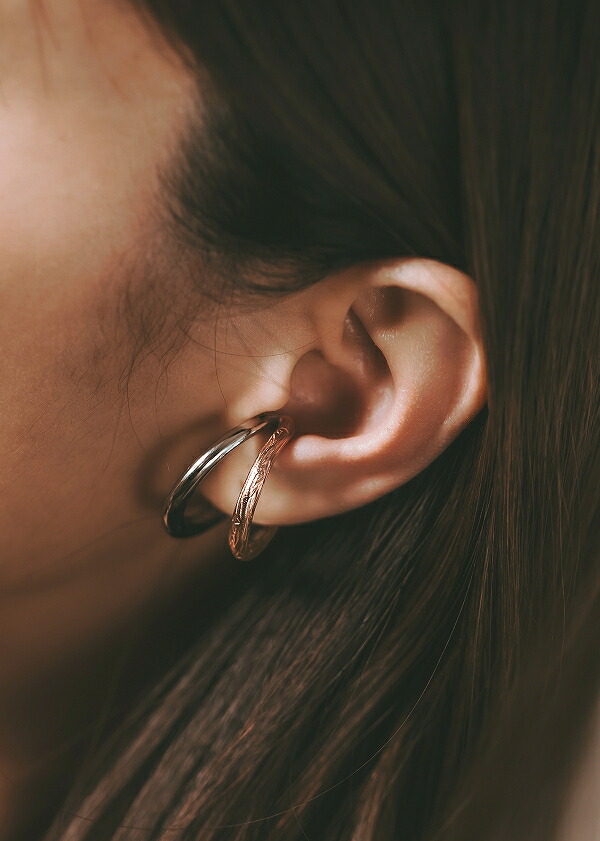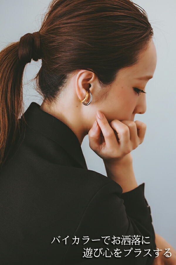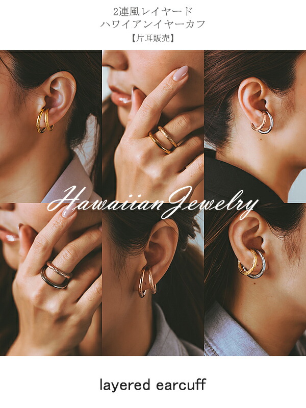 ハワイアンジュエリー イヤーカフ 片耳 2連風 レイヤー バイカラー 挟む レディース 指輪 リング サージカルステンレス 流行 メンズ 金属アレルギー イヤカフ 重ねづけ ノンホールピアス イヤリング 男女兼用 henoheno ブランド ハワイアン