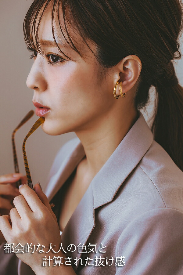 イヤーカフ ハワイアン 2連風 ノンホールピアス キレイめ 都会的