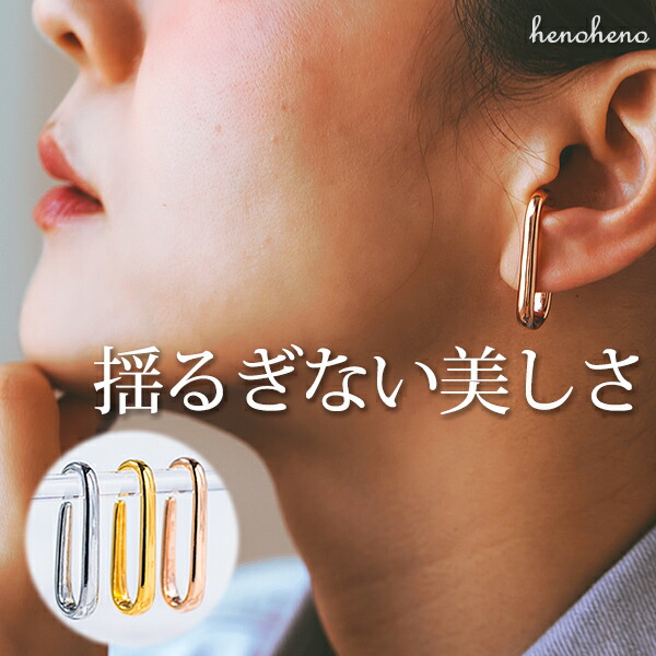 イヤーカフ ロング スクエア 片耳 挟む オーバル イヤカフ イヤリング ノンホール ピアス ウェアリング レディース サージカルステンレス 流行 大ぶり フープ シンプル メンズ 金属アレルギー 重ねづけ シンプル 男女兼用 henoheno ブランド