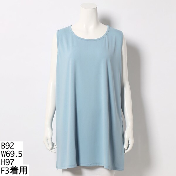 ベーシックなロングタンクトップです。自然に裾へと広がるシルエット、落ち感で作られる美しいドレープ、やや光沢のあるさらっとした素材、着心地抜群です。