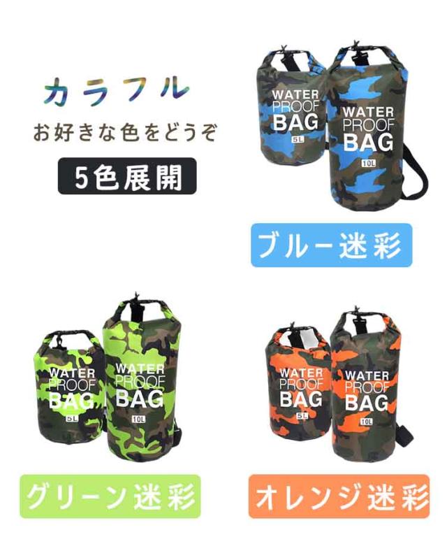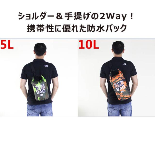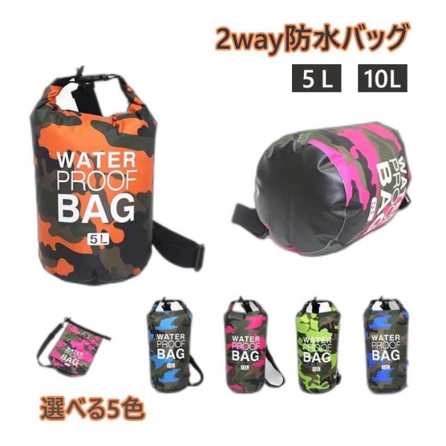 防水バッグ 5L 10L 防水 ショルダーバッグ ドライバッグ ドラム型 メンズ レディース 2way 多機能 大容量 鞄 スイミング プール 水着バッグ 海 海水浴 マリンスポーツ サーフィン 川 釣り アウトドア 全5色 迷彩柄