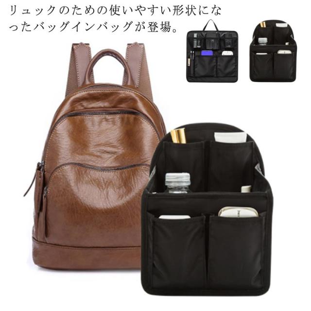 インナーバッグ バッグインバッグ リュック 縦型 Mサイズ 大きめ リュックインバッグ 自立 かわいい バックインバック ポーチ 中身 整理 ギフト プレゼント軽い ママ おしゃれ 折り畳み 薄型 水筒 ポケット レディース メンズ バッグ ポーチ トラベルポーチ