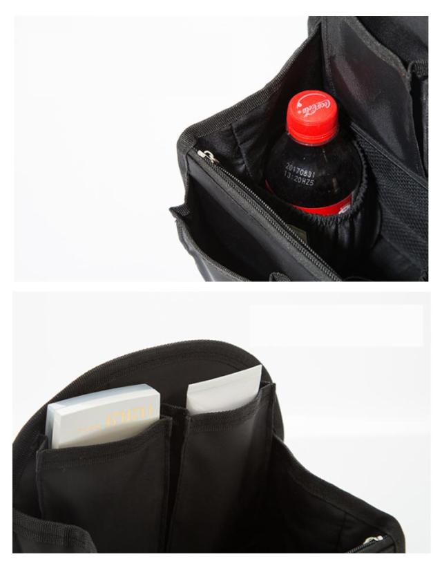 | リュックのための使いやすい形状になったバッグインバッグが登場。 ごちゃごちゃ散らかった小物をひとまとめに。 いつもの持ち物を収納してそのままリュックにイン! 大小のポケットたくさんありで仕分けが可能。 嬉しいボトルホルダー&キーリング付き。 リュック上部の空間まで無駄なく活用する事が出来ます。 スマホやペットボトル、折り畳み傘や鍵など、様々な形状の物をジャストフィット収納! 畳めばスリムになりマチがないリュックでもOK! | |