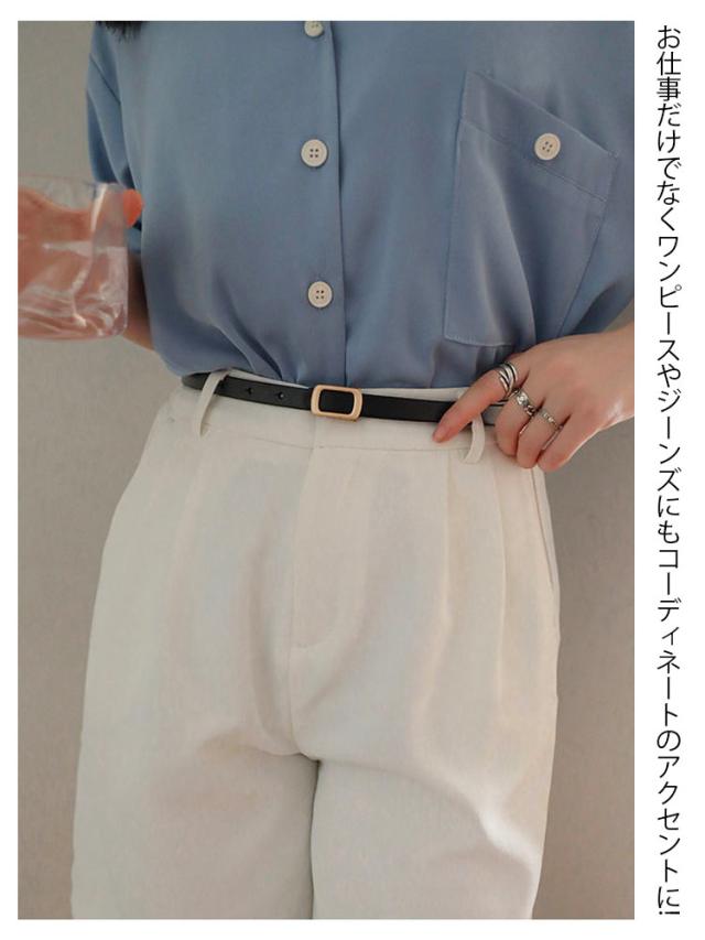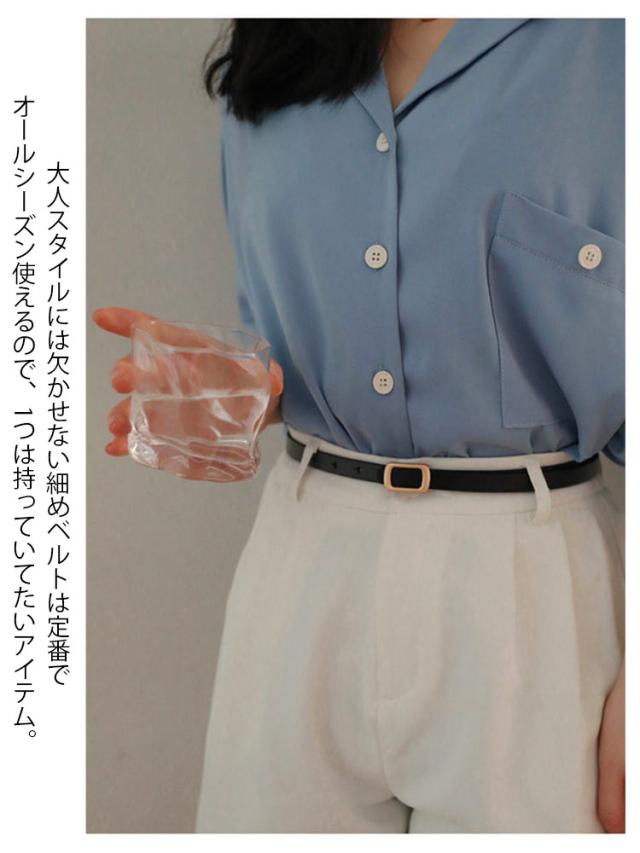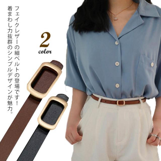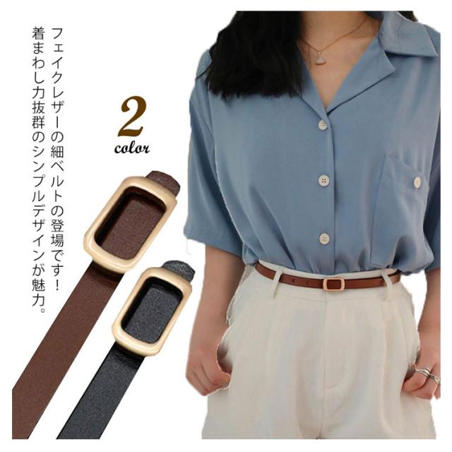細ベルト レディース ビジネスベルト 細幅 12mm幅 ウエスト 穴あけ 調整可能 PUレザー 長方形バックル ゴールド ステッチベルト 無地 シンプル スーツ カジュアル ビジネス フォーマル ギフト 長持ち 丈夫 ブラック ブラウン 送料無料