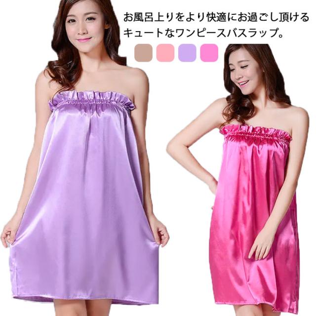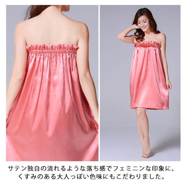 サテン バスローブ レディース ルームウェア ネグリジェ ワンピース 婦人 ママ 姫系 寝巻き 部屋着 寝間着 美容室 冷房対応 柔らか 快適 ゆったり 体型カバー 大きいサイズ 風呂上り 巻きタオル バスラップ ラップドレス 送料無料