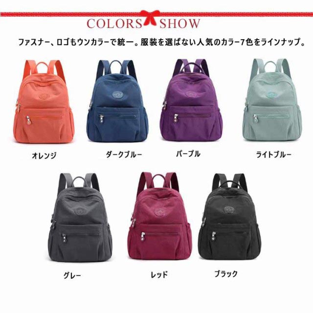 | 7color!軽量&大容量ナイロンリュック コンパクトなのに収納力はバツグン!あれこれ入れても中身が迷子にならない、ポケット多めの丈夫なリュックです。 約510gの軽量リュック。マチがしっかりあるので見た目はコンパクトでもたくさんものが入ります。 ポケットは全部で8個!カバンの中で小物が迷子になることもなくなります。 コンパクトな見た目からは想像できないほど荷物が入る! 背中側にはシークレットポケットもついているので貴重品の持ち運びも安心です。 ファスナーが大きく開くので、中身の出し入れがとっても楽にできちゃいます。 リュックとしてだけじゃなく、キャリーオンバッグにも。旅行のサブバッグにもぴったりです。 ファスナー、ロゴもウンカラーで統一。服装を選ばない人気のカラー7色をラインナップ。 | |