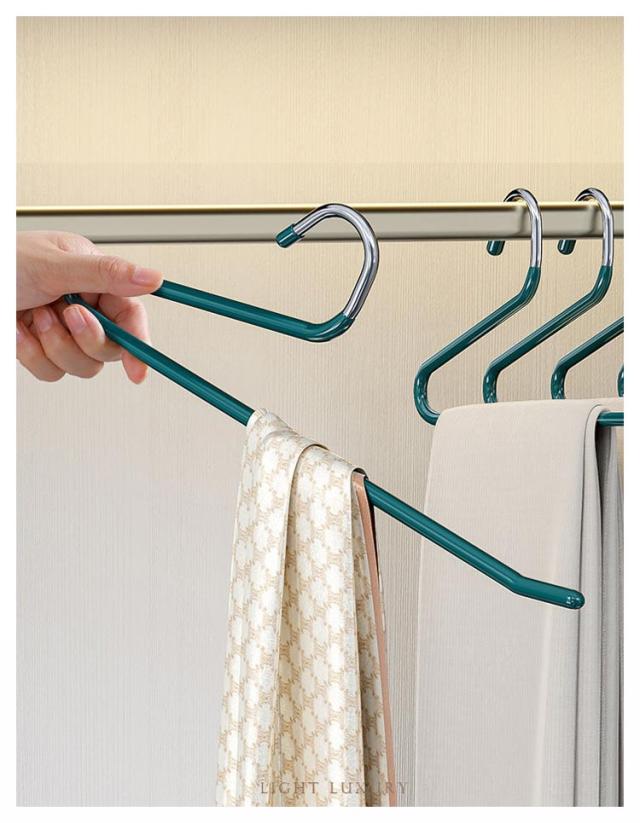 | パンツ掛けハンガー10本セット 丈夫で錆びに強いステンレスを使用。 ハンガーにはPVC加工がされているため、衣類がピタッとかけられます。ハンガーが多少傾いてもお洋服がすベらないので、ストレスがたまりません。 厚さが6mmがあるため、デニムのような重い衣類も安心して掛けることができます。 タオルやスカーフ、ストールなど、様々な衣類をすっきり収納できます。 | |