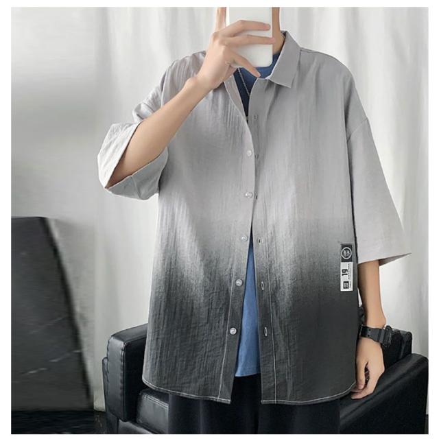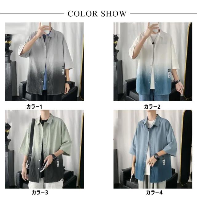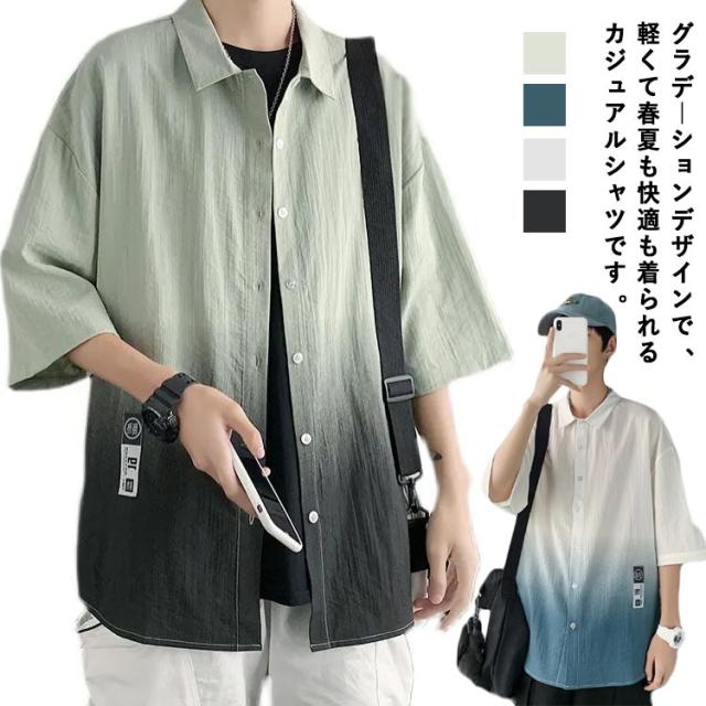 グラデーション シャツ メンズ 半袖シャツ カジュアルシャツ 春夏 七分袖シャツ 開襟シャツ メンズシャツ 夏 サマー 韓国 メンズ ファッション 接触冷感 涼しい L XL 2XL 3XL