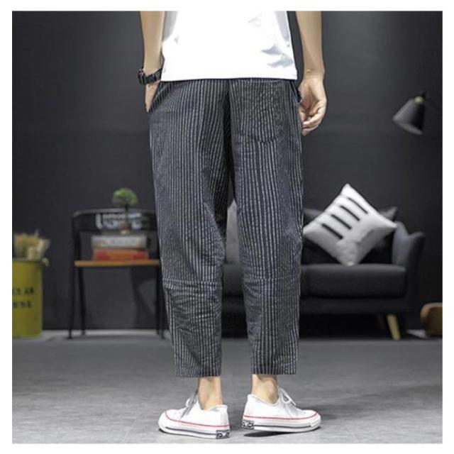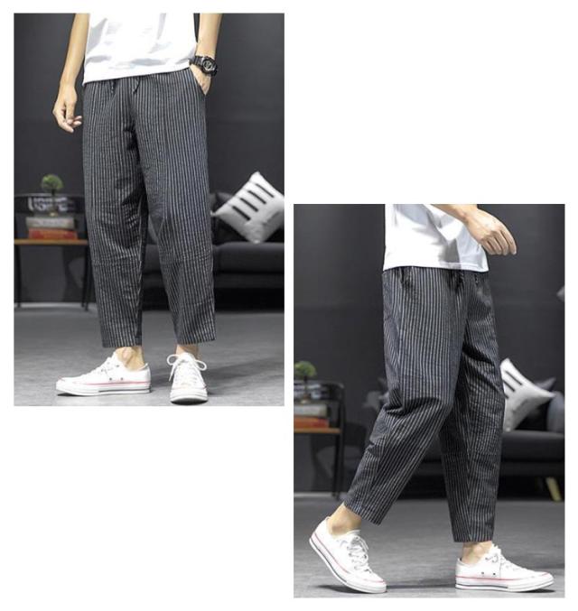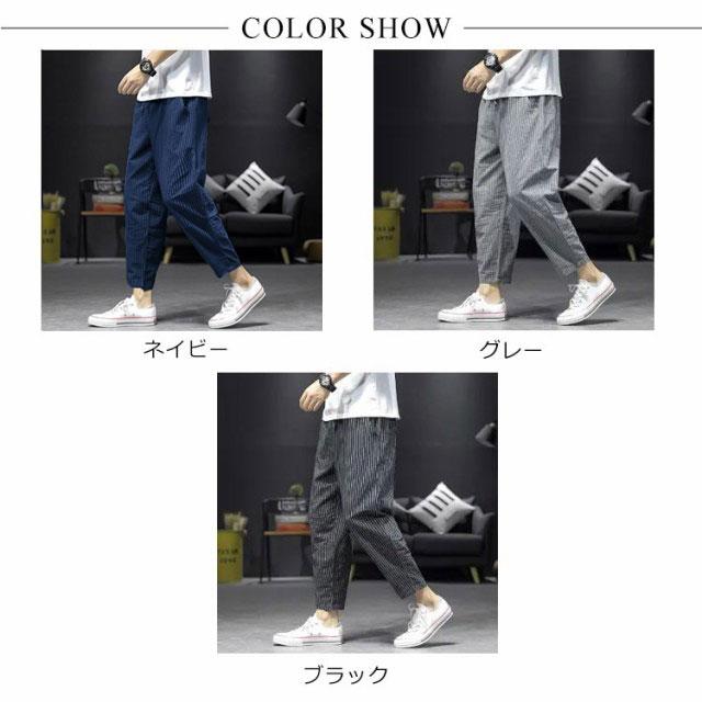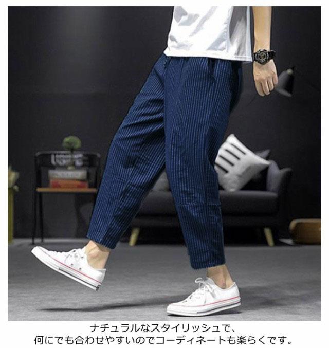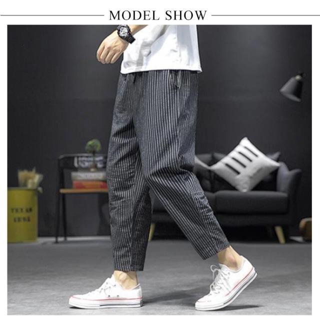 サルエルパンツ メンズ 九分丈 リネン 綿100% スリム ストライプ柄 春夏 綿麻パンツ リネン パンツ ゆったり イージーパンツ ルームパンツ 通勤 通学 M-5XL