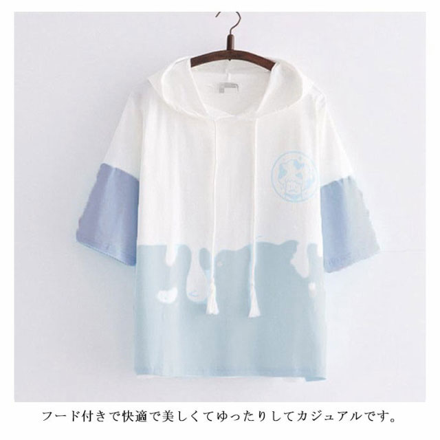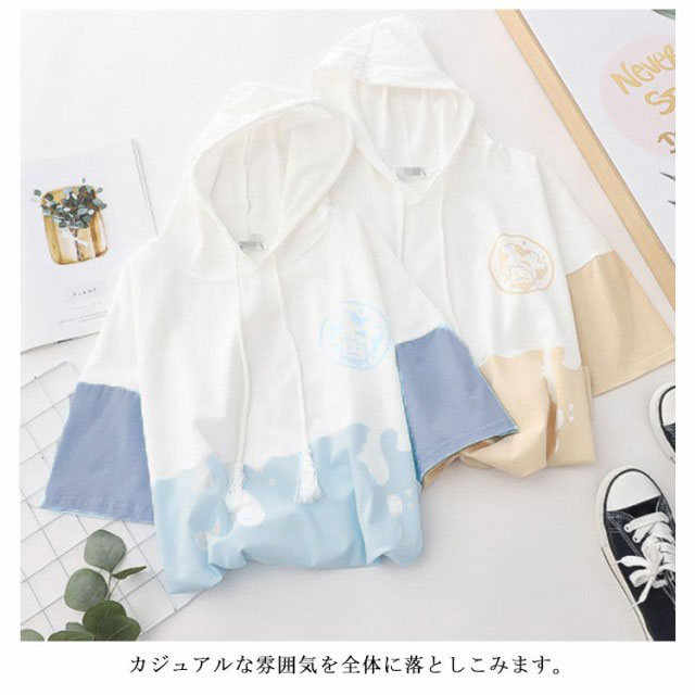 パーカー レディース 半袖パーカ 夏 半袖tシャツ フード付き tシャツ 半袖Tシャツ トップス ビッグパーカー プルオーバー 学生 乙女 女子高生 森ガール 通学 通勤 大きいサイズ 可愛い 薄手